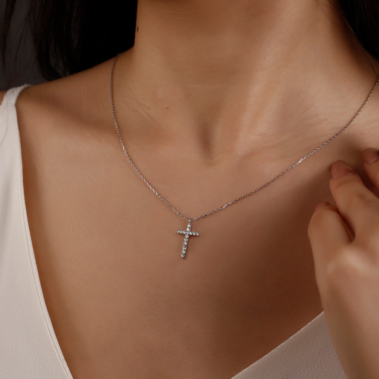 ♥ Zirkonia Kreuz Halskette. Diese Krappen Set CZ Kreuz Anhänger Halskette ist wunderschön gearbeitet. Eine atemberaubende christliche Kristallkreuzkette, die ein schönes religiöses Geschenk machen würde. Geeignet für den Alltag, in der Kirche oder zur Teilnahme an einer Taufe oder Taufe. ♥